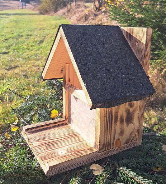 Eichhörnchenfutterhaus Eichhörnchen Futterhaus Futterstelle für Eichhörnchen edel geflammt mit Spitzdach E2G
