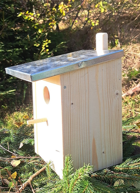 Nistkasten Nisthöhle für Vögel Vogelhaus Nistkasten zum Aufhängen Bruthöhle mit Blechdach mit Einflugloch 45mm Natur (N1)