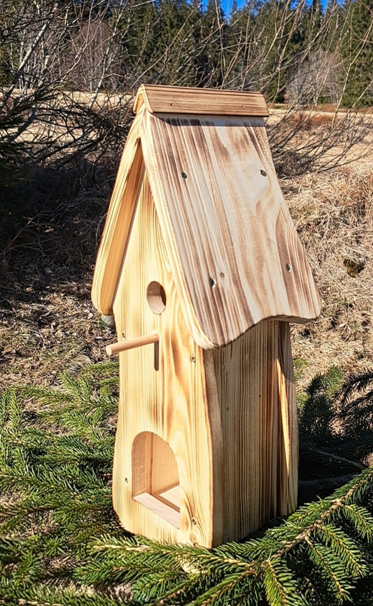 Nistkasten Nisthöhle für Vögel Vogelhaus Nistkasten zum Aufhängen Bruthöhle mit Einflugloch 35mm auf 28mm reduzierbar edel geflammt (N2G)