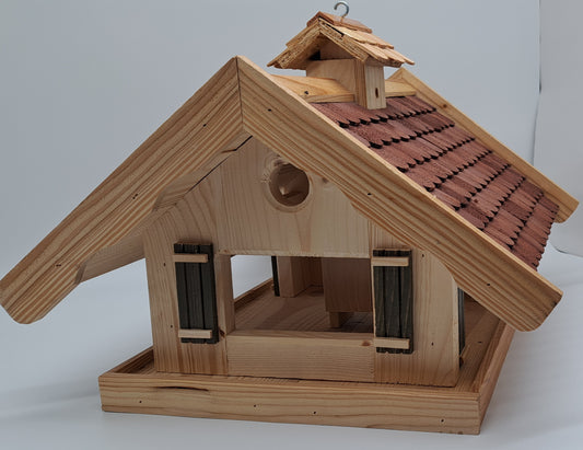 Almhütte Vogelhaus Futtersilo Futterhaus Vogelfutter Vogelvilla Vogel braun AB 1