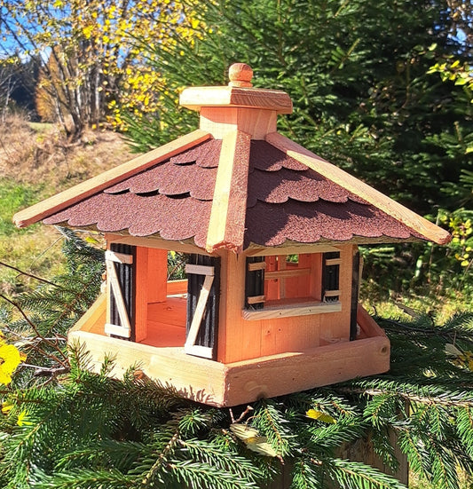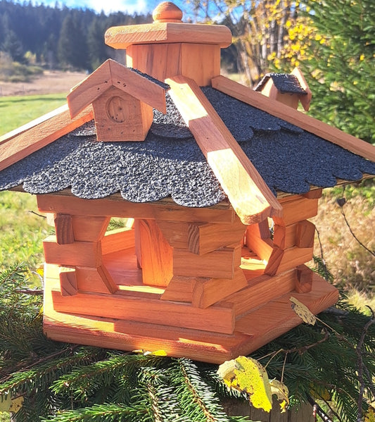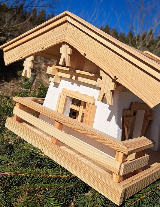 Vogelhaus Futterhaus Lärchenholzdach Almhütte Häuschen A1