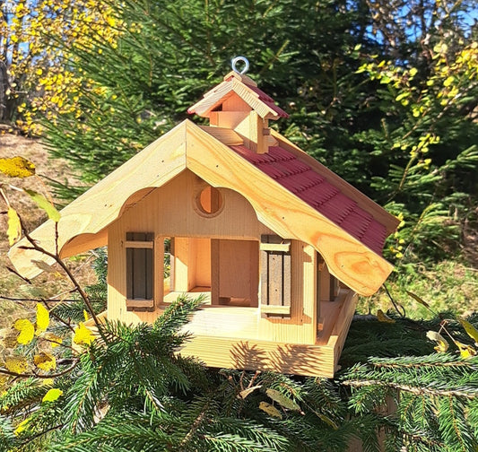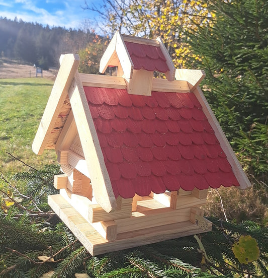 Almhütte Vogelhaus Futtersilo Futterhaus Vogelfutter Vogelvilla Vogel Rot AR1