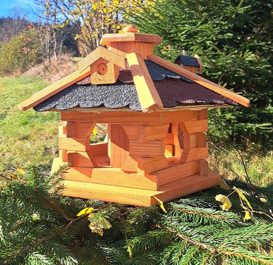 Vogelhaus Futtersilo Futterhaus Vogelfutter Vogelvilla Vogel im Bayerwaldstil (BW1)